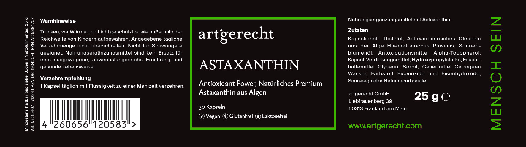 - 100% vegan, extrahiert aus Algen (Haematococcus Pluvialis)