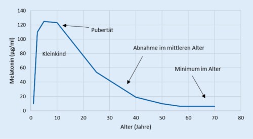 Mit zunehmendem Alter verändert sich die körpereigene Hormonproduktion – auch die Ausschüttung des Schlafhormons Melatonin nimmt deutlich ab. Während jüngere Menschen am Abend noch ausreichend Melatonin bilden, sinkt die Produktion bei Senioren oft stark. Dadurch wird das natürliche Signal „Schlafenszeit“ schwächer, was sich in häufigem nächtlichem Aufwachen, verkürzten Tiefschlafphasen und frühem Erwachen am Morgen äußert.