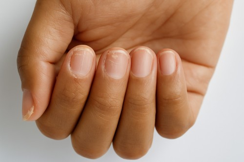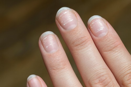 - Fahle Farbe: Statt rosig und glänzend wirken die Nägel oft blass und matt.